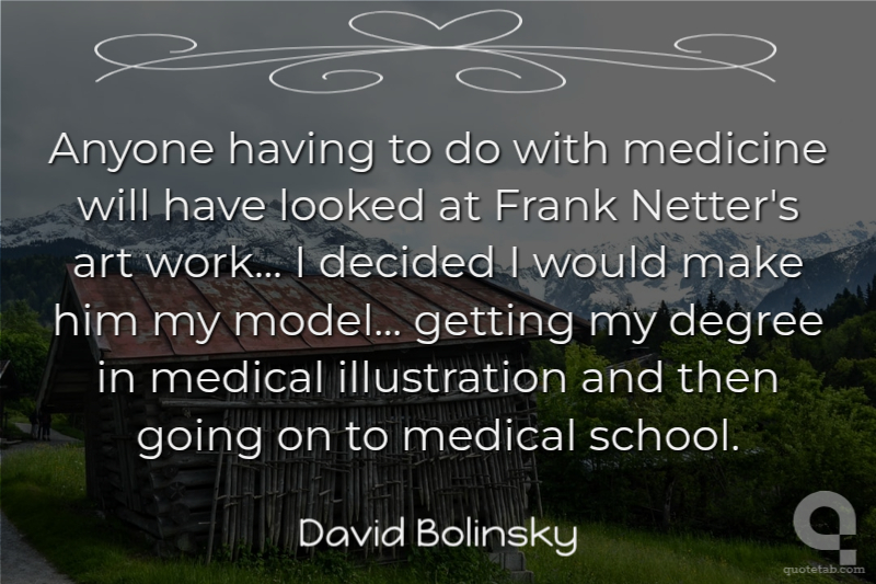 Anyone having to do with medicine will have looked at Frank Netter's art work... I decided I would make him my model... getting my degree in medical illustration and then going on to medical school.