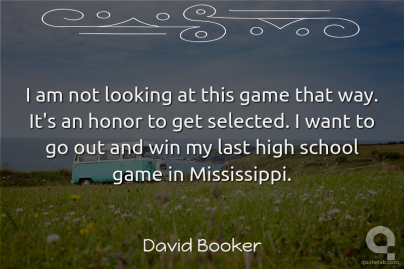 I am not looking at this game that way. It's an honor to get selected. I want to go out and win my last high school game in Mississippi.