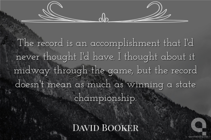 The record is an accomplishment that I'd never thought I'd have. I thought about it midway through the game, but the record doesn't mean as much as winning a state championship.