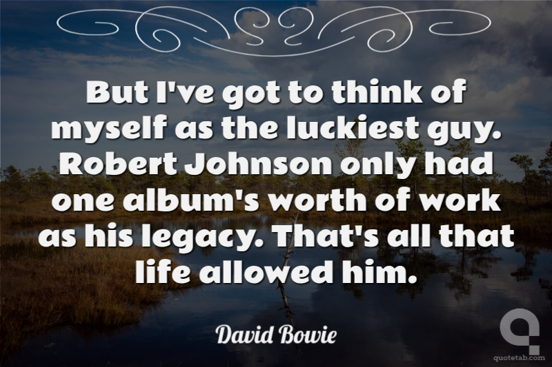 But I've got to think of myself as the luckiest guy. Robert Johnson only had one album's worth of work as his legacy. That's all that life allowed him.
