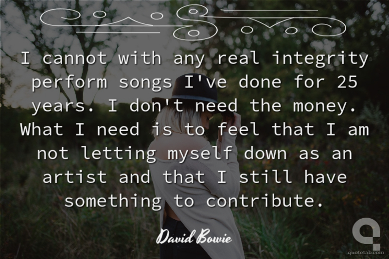 I cannot with any real integrity perform songs I've done for 25 years. I don't need the money. What I need is to feel that I am not letting myself down as an artist and that I still have something to contribute.