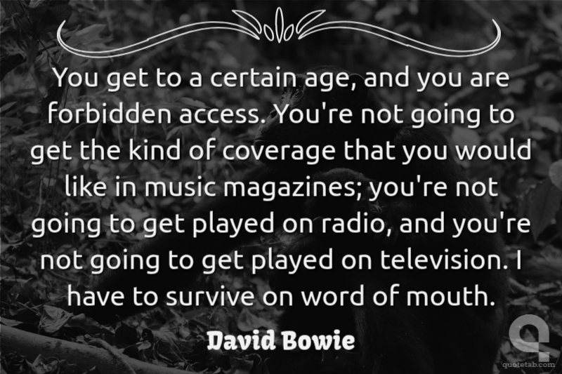 You get to a certain age, and you are forbidden access. You're not going to get the kind of coverage that you would like in music magazines; you're not going to get played on radio, and you're not going to get played on television. I have to survive on word of mouth.