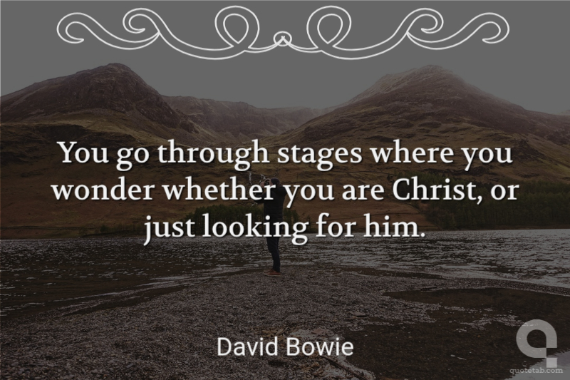 You go through stages where you wonder whether you are Christ, or just looking for him.