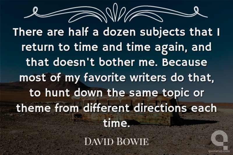 There are half a dozen subjects that I return to time and time again, and that doesn't bother me. Because most of my favorite writers do that, to hunt down the same topic or theme from different directions each time.