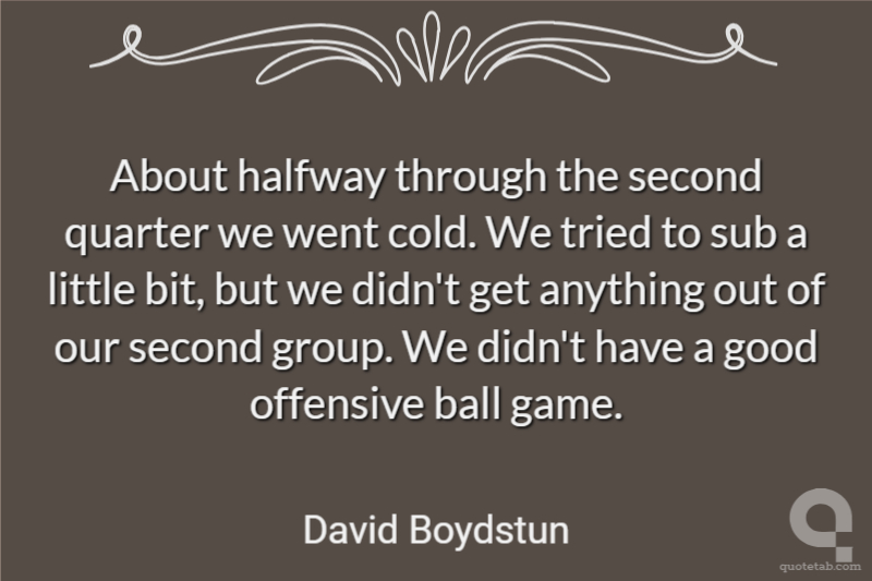 About halfway through the second quarter we went cold. We tried to sub a little bit, but we didn't get anything out of our second group. We didn't have a good offensive ball game.