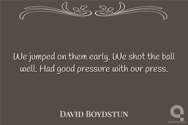 We jumped on them early. We shot the ball well. Had good pressure with our press.