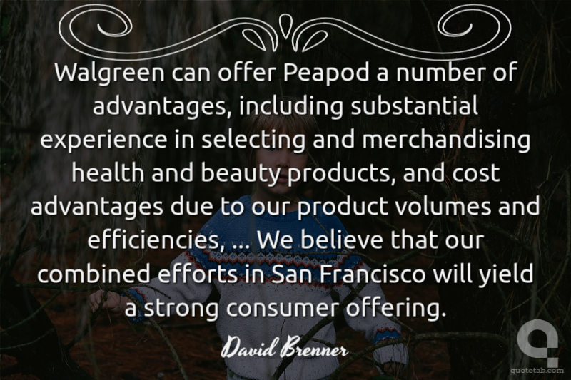 Walgreen can offer Peapod a number of advantages, including substantial experience in selecting and merchandising health and beauty products, and cost advantages due to our product volumes and efficiencies, ... We believe that our combined efforts in San Francisco will yield a strong consumer offering.