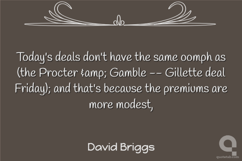 Today's deals don't have the same oomph as (the Procter & Gamble -- Gillette deal Friday); and that's because the premiums are more modest,