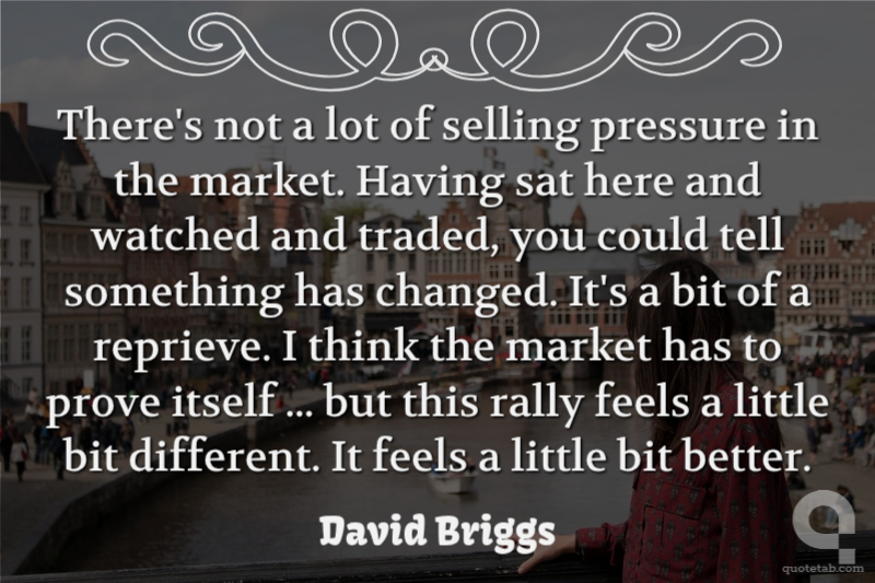 There's not a lot of selling pressure in the market. Having sat here and watched and traded, you could tell something has changed. It's a bit of a reprieve. I think the market has to prove itself ... but this rally feels a little bit different. It feels a little bit better.
