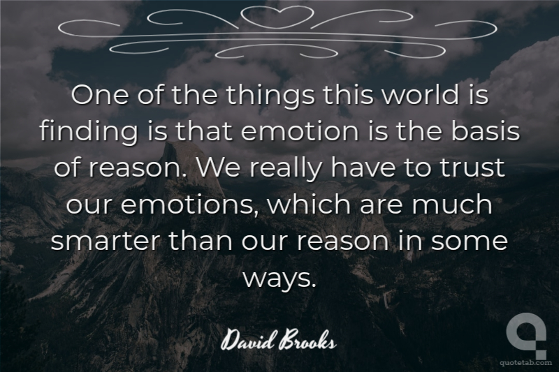 One of the things this world is finding is that emotion is the basis of reason. We really have to trust our emotions, which are much smarter than our reason in some ways.