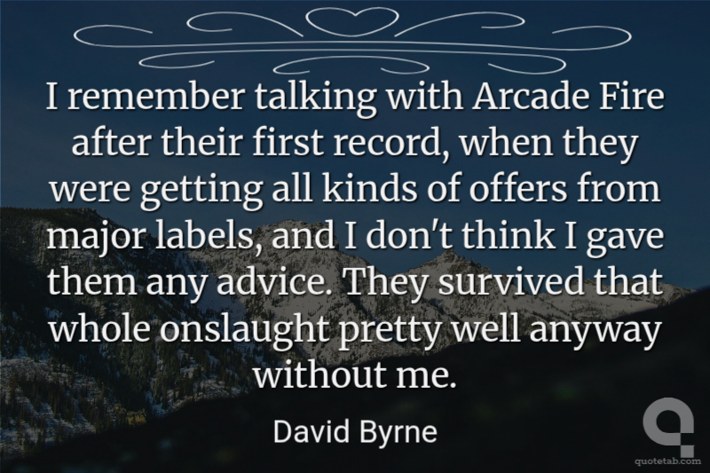 I remember talking with Arcade Fire after their first record, when they were getting all kinds of offers from major labels, and I don't think I gave them any advice. They survived that whole onslaught pretty well anyway without me.