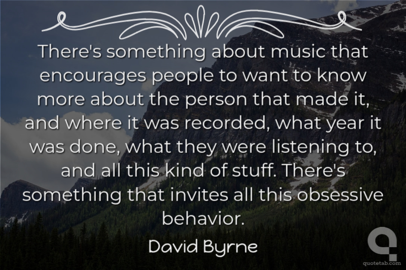 There's something about music that encourages people to want to know more about the person that made it, and where it was recorded, what year it was done, what they were listening to, and all this kind of stuff. There's something that invites all this obsessive behavior.