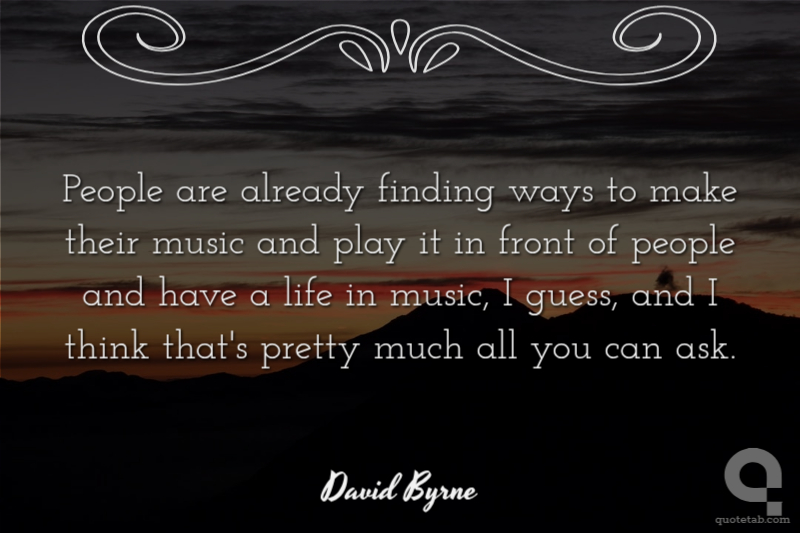 People are already finding ways to make their music and play it in front of people and have a life in music, I guess, and I think that's pretty much all you can ask.