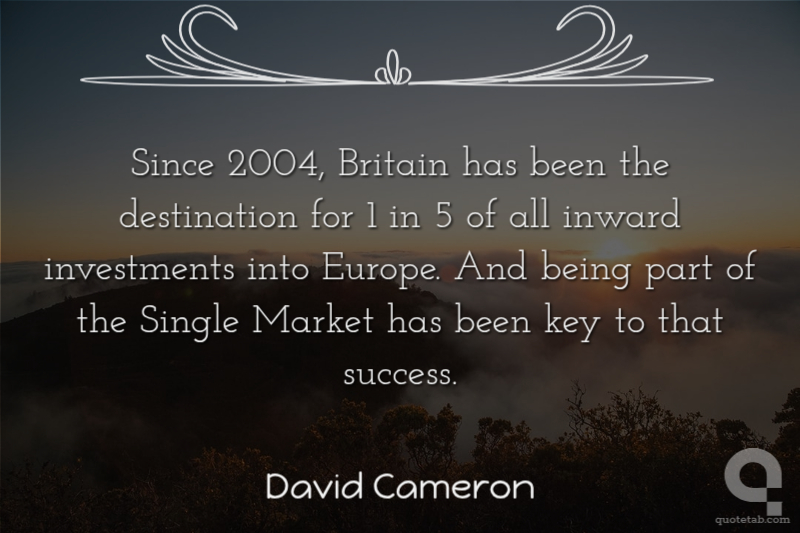 Since 2004, Britain has been the destination for 1 in 5 of all inward investments into Europe. And being part of the Single Market has been key to that success.
