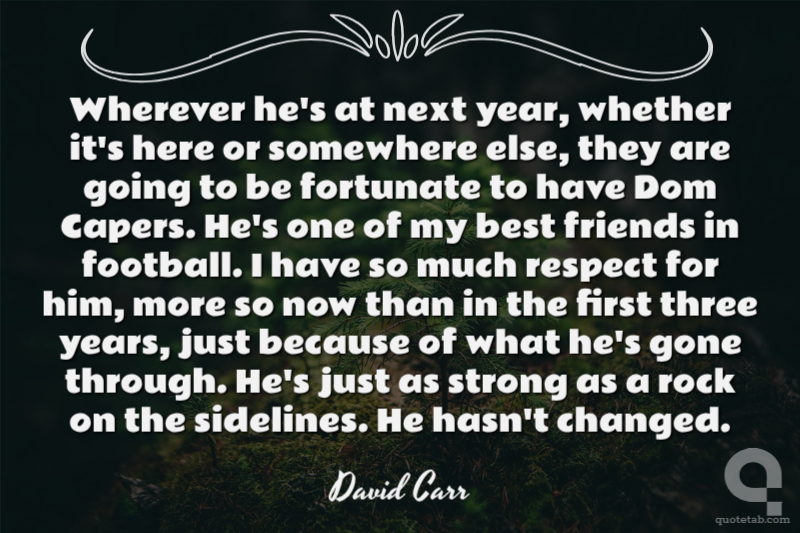 Wherever he's at next year, whether it's here or somewhere else, they are going to be fortunate to have Dom Capers. He's one of my best friends in football. I have so much respect for him, more so now than in the first three years, just because of what he's gone through. He's just as strong as a rock on the sidelines. He hasn't changed.
