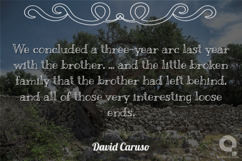 We concluded a three-year arc last year with the brother, ... and the little broken family that the brother had left behind, and all of those very interesting loose ends.