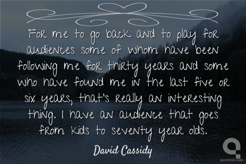 For me to go back and to play for audiences some of whom have been following me for thirty years and some who have found me in the last five or six years, that's really an interesting thing. I have an audience that goes from kids to seventy year olds.