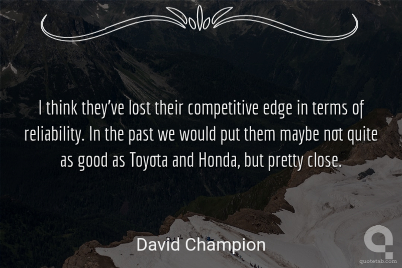 I think they've lost their competitive edge in terms of reliability. In the past we would put them maybe not quite as good as Toyota and Honda, but pretty close.