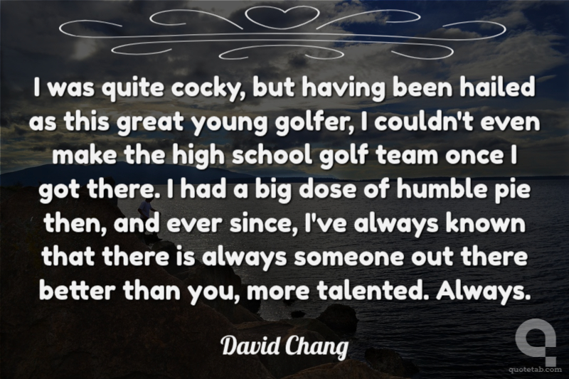 I was quite cocky, but having been hailed as this great young golfer, I couldn't even make the high school golf team once I got there. I had a big dose of humble pie then, and ever since, I've always known that there is always someone out there better than you, more talented. Always.