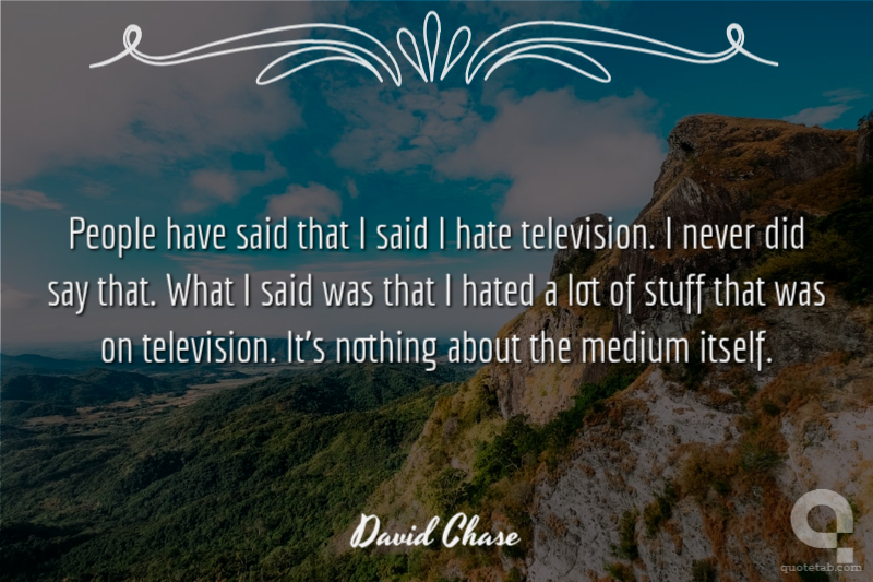 People have said that I said I hate television. I never did say that. What I said was that I hated a lot of stuff that was on television. It's nothing about the medium itself.