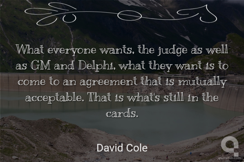 What everyone wants, the judge as well as GM and Delphi, what they want is to come to an agreement that is mutually acceptable. That is what's still in the cards.