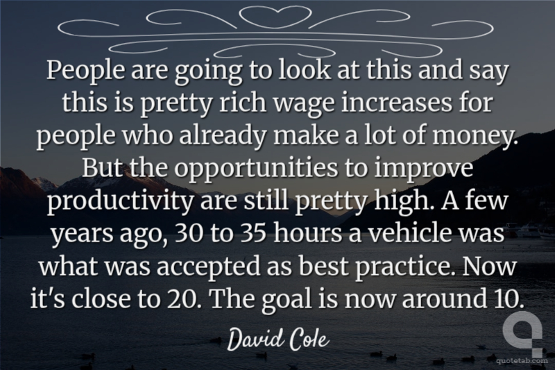 People are going to look at this and say this is pretty rich wage increases for people who already make a lot of money. But the opportunities to improve productivity are still pretty high. A few years ago, 30 to 35 hours a vehicle was what was accepted as best practice. Now it's close to 20. The goal is now around 10.