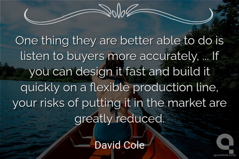 One thing they are better able to do is listen to buyers more accurately, ... If you can design it fast and build it quickly on a flexible production line, your risks of putting it in the market are greatly reduced.