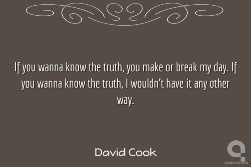 If you wanna know the truth, you make or break my day. If you wanna know the truth, I wouldn't have it any other way.