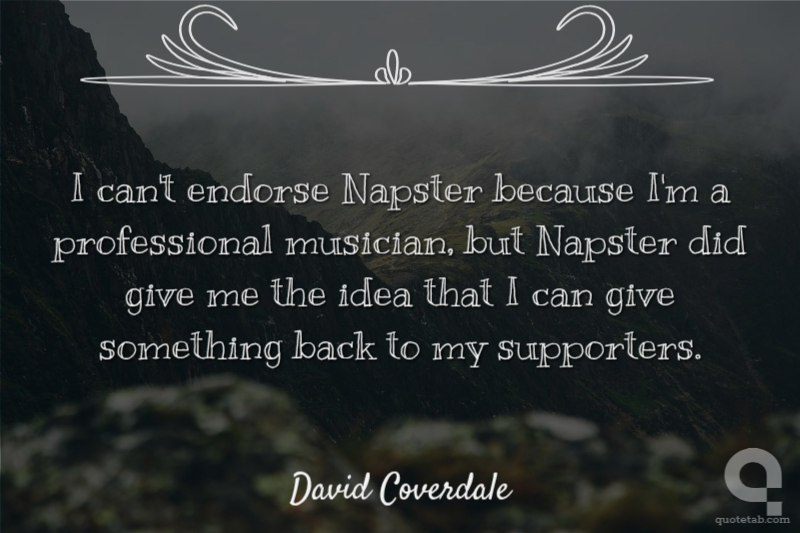I can't endorse Napster because I'm a professional musician, but Napster did give me the idea that I can give something back to my supporters.