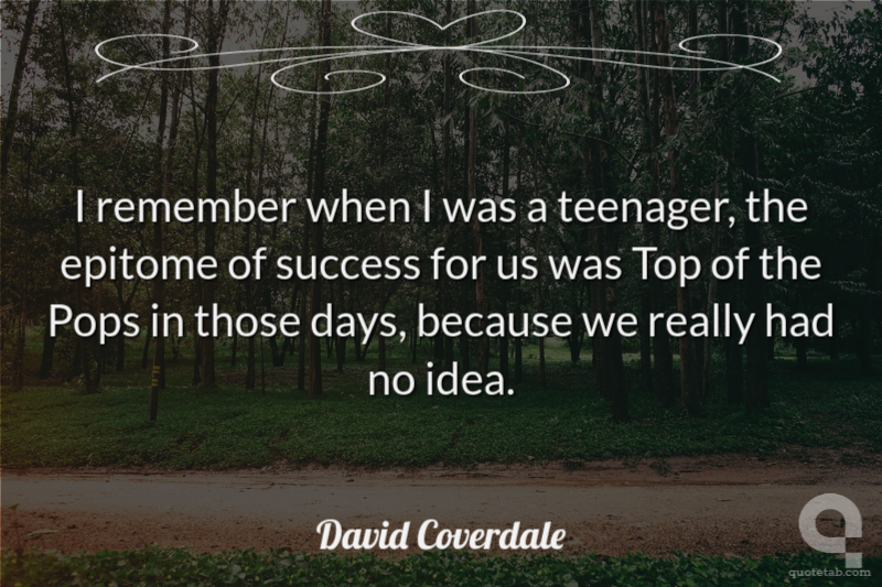 I remember when I was a teenager, the epitome of success for us was Top of the Pops in those days, because we really had no idea.