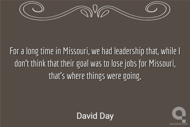 For a long time in Missouri, we had leadership that, while I don't think that their goal was to lose jobs for Missouri, that's where things were going,