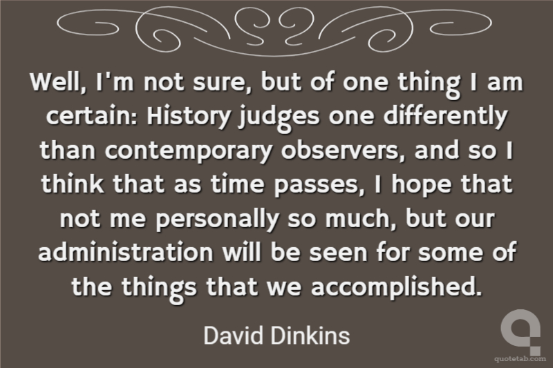 Well, I'm not sure, but of one thing I am certain: History judges one differently than contemporary observers, and so I think that as time passes, I hope that not me personally so much, but our administration will be seen for some of the things that we accomplished.