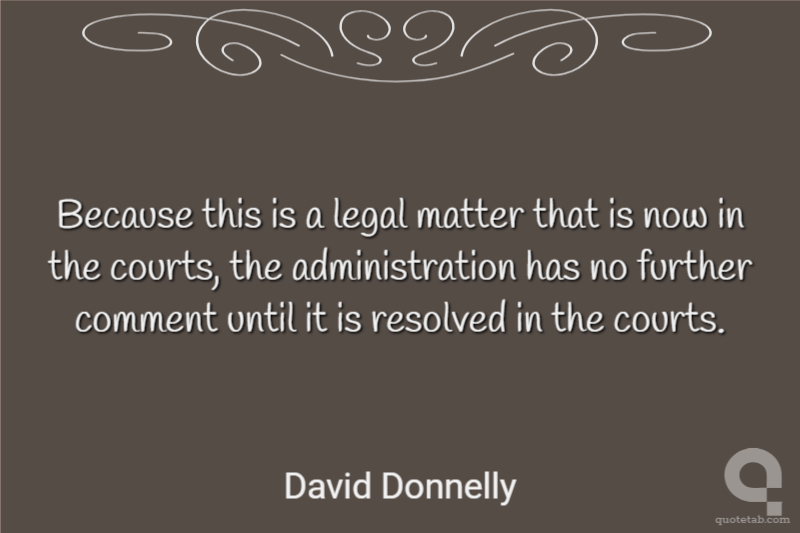 Because this is a legal matter that is now in the courts, the administration has no further comment until it is resolved in the courts.