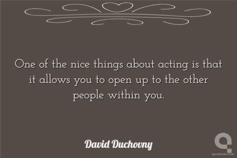 One of the nice things about acting is that it allows you to open up to the other people within you.