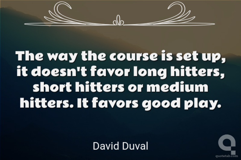 The way the course is set up, it doesn't favor long hitters, short hitters or medium hitters. It favors good play.
