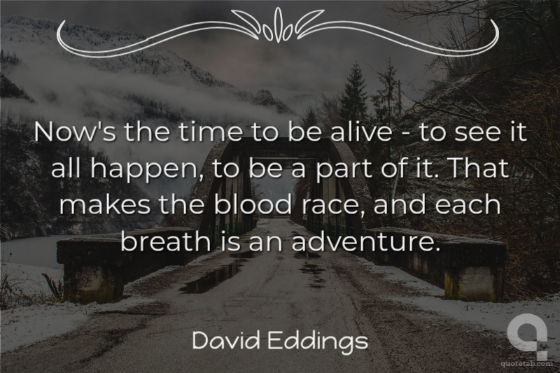 Now's the time to be alive - to see it all happen, to be a part of it. That makes the blood race, and each breath is an adventure.