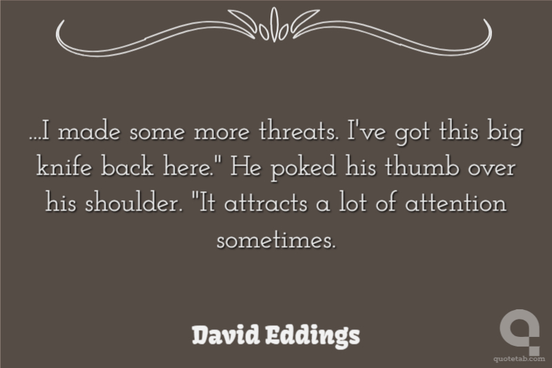 ...I made some more threats. I've got this big knife back here." He poked his thumb over his shoulder. "It attracts a lot of attention sometimes.