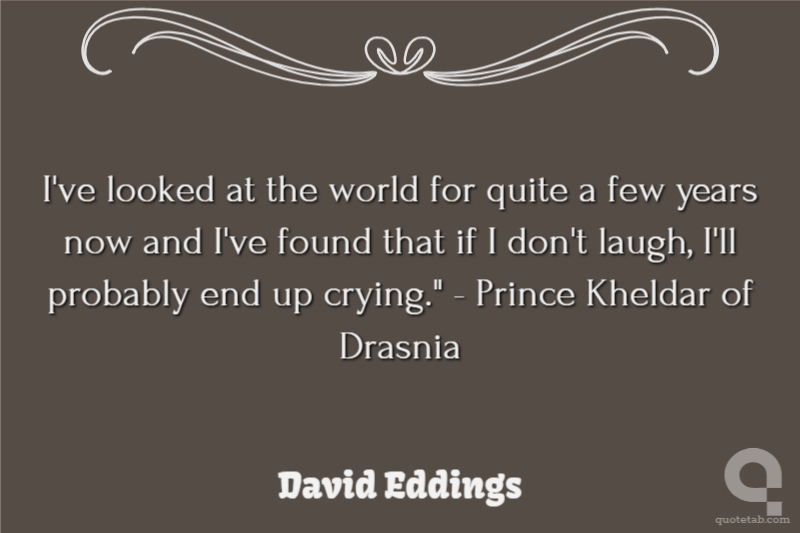 I've looked at the world for quite a few years now and I've found that if I don't laugh, I'll probably end up crying." - Prince Kheldar of Drasnia