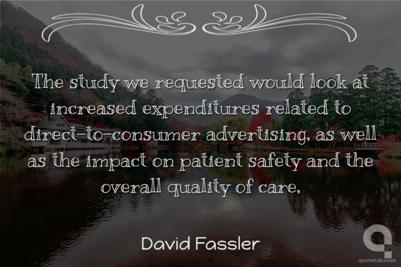 The study we requested would look at increased expenditures related to direct-to-consumer advertising, as well as the impact on patient safety and the overall quality of care,