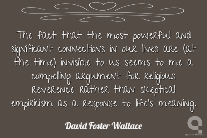 The fact that the most powerful and significant connections in our lives are (at the time) invisible to us seems to me a compelling argument for religious reverence rather than skeptical empiricism as a response to life's meaning.
