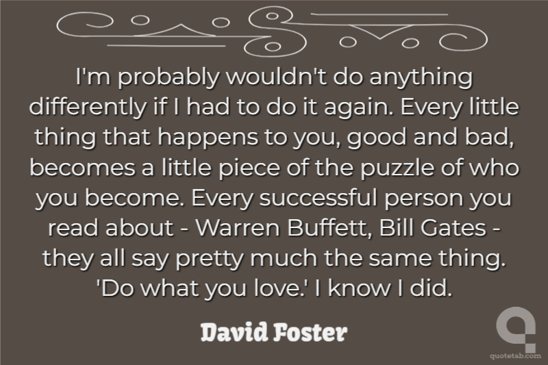 I'm probably wouldn't do anything differently if I had to do it again. Every little thing that happens to you, good and bad, becomes a little piece of the puzzle of who you become. Every successful person you read about - Warren Buffett, Bill Gates - they all say pretty much the same thing. 'Do what you love.' I know I did.