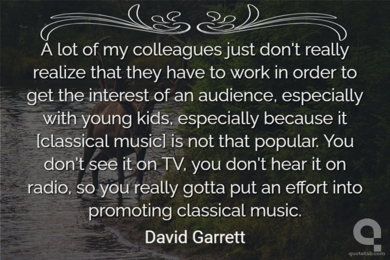 A lot of my colleagues just don't really realize that they have to work in order to get the interest of an audience, especially with young kids, especially because it [classical music] is not that popular. You don't see it on TV, you don't hear it on radio, so you really gotta put an effort into promoting classical music.