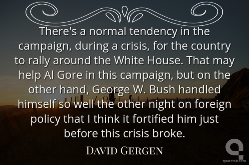 There's a normal tendency in the campaign, during a crisis, for the country to rally around the White House. That may help Al Gore in this campaign, but on the other hand, George W. Bush handled himself so well the other night on foreign policy that I think it fortified him just before this crisis broke.