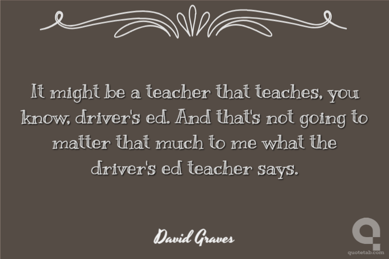 It might be a teacher that teaches, you know, driver's ed. And that's not going to matter that much to me what the driver's ed teacher says.