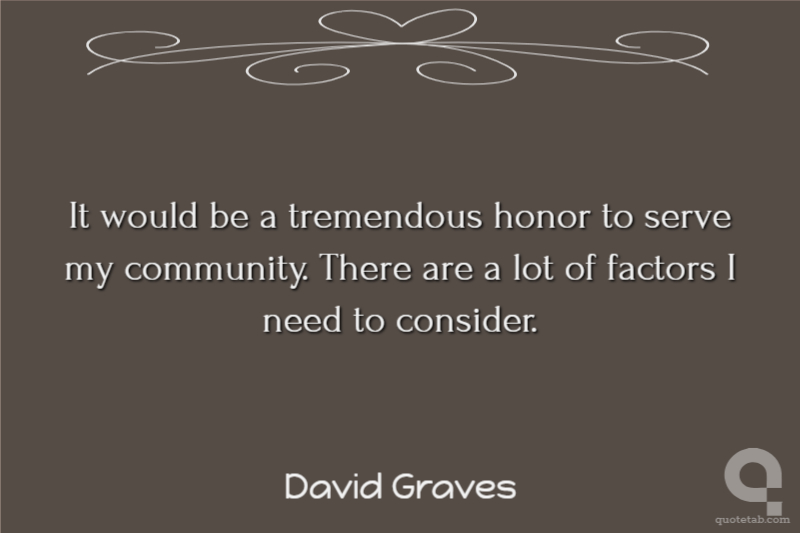 It would be a tremendous honor to serve my community. There are a lot of factors I need to consider.