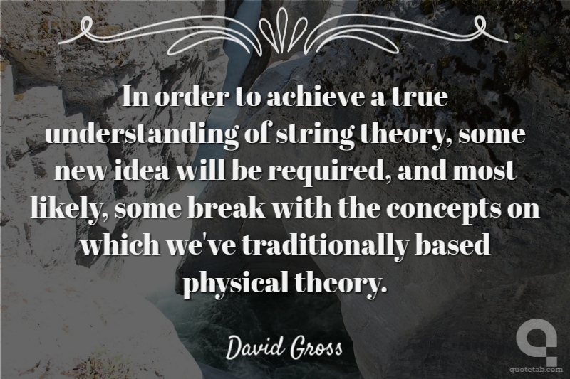 In order to achieve a true understanding of string theory, some new idea will be required, and most likely, some break with the concepts on which we've traditionally based physical theory.