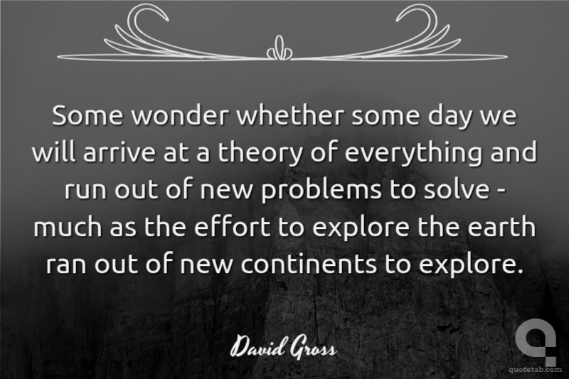 Some wonder whether some day we will arrive at a theory of everything and run out of new problems to solve - much as the effort to explore the earth ran out of new continents to explore.