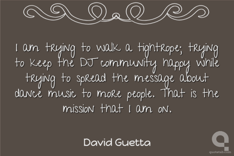 I am trying to walk a tightrope; trying to keep the DJ community happy while trying to spread the message about dance music to more people. That is the mission that I am on.