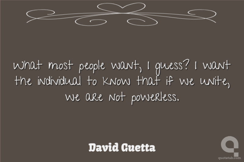 What most people want, I guess? I want the individual to know that if we unite, we are not powerless.