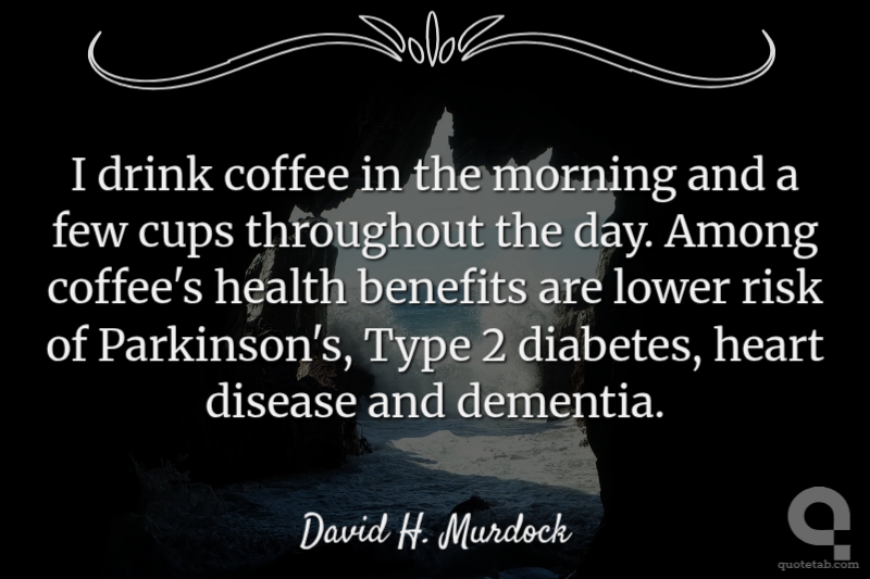 I drink coffee in the morning and a few cups throughout the day. Among coffee's health benefits are lower risk of Parkinson's, Type 2 diabetes, heart disease and dementia.